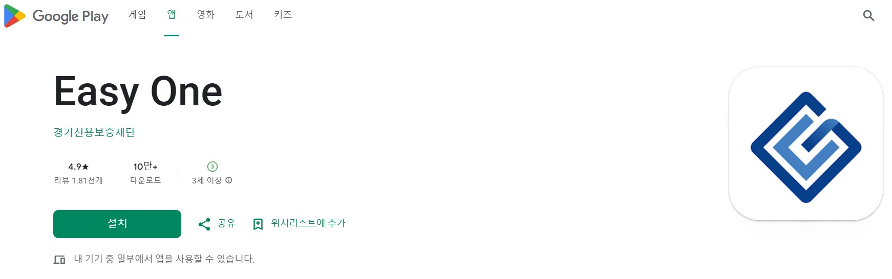 ▼구글플레이 경기신용보증재단 앱 Easy One 다운로드 바로가기(안드로이드) ▼