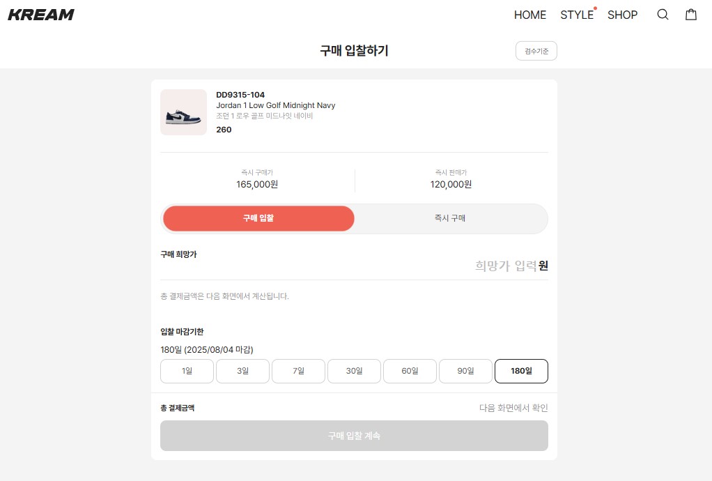 ✅ 입찰 구매 (조금 더 저렴하게 사고 싶을 때)