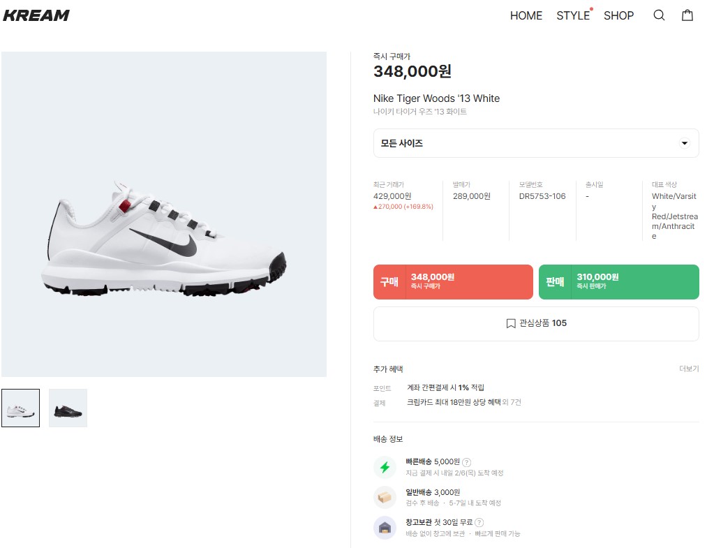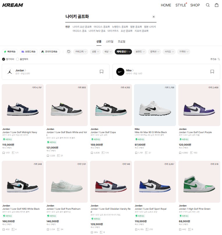 👉 KREAM 사이트에서 나이키 골프화 가격 확인하기: KREAM 공식 사이트