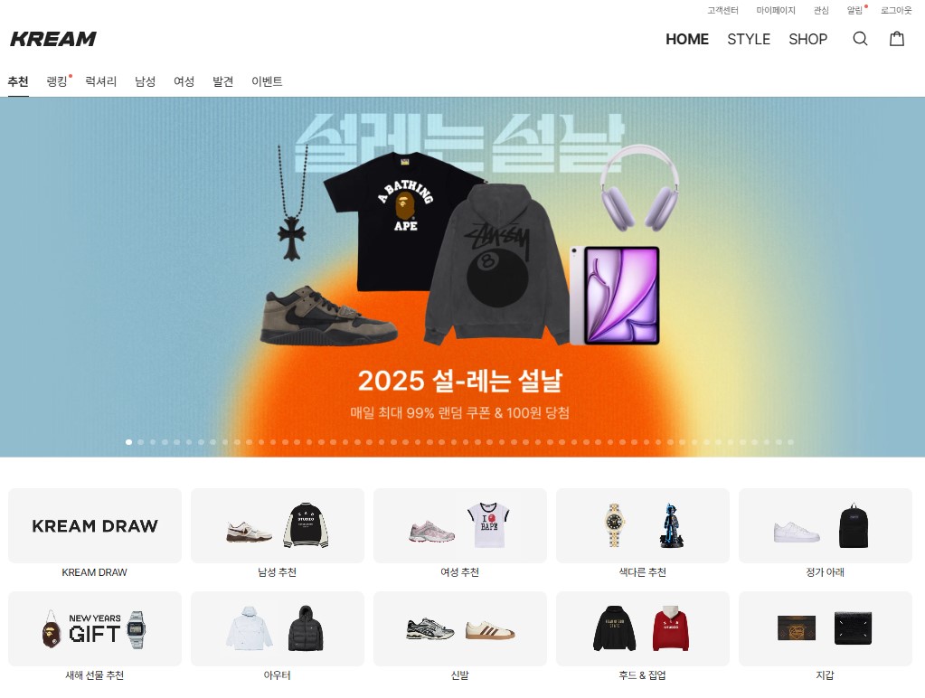KREAM(크림)은 개인 간 운동화 및 패션 아이템 거래를 중개해 주는 플랫폼입니다. 특히 한정판 스니커즈 거래가 활발하지만, 일반 모델도 정가 이하로 구매할 수 있는 기회가 많습니다.