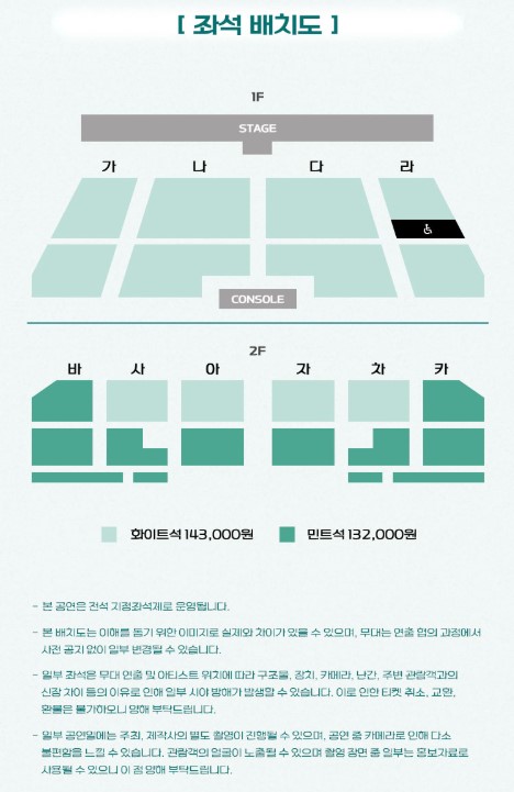 티켓가격 : 화이트석 143,000원, 민트석 132,000원