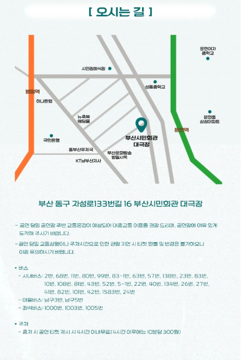 주소 : 부산 동구 자성로 133번길 16 부산시민회관 대극장