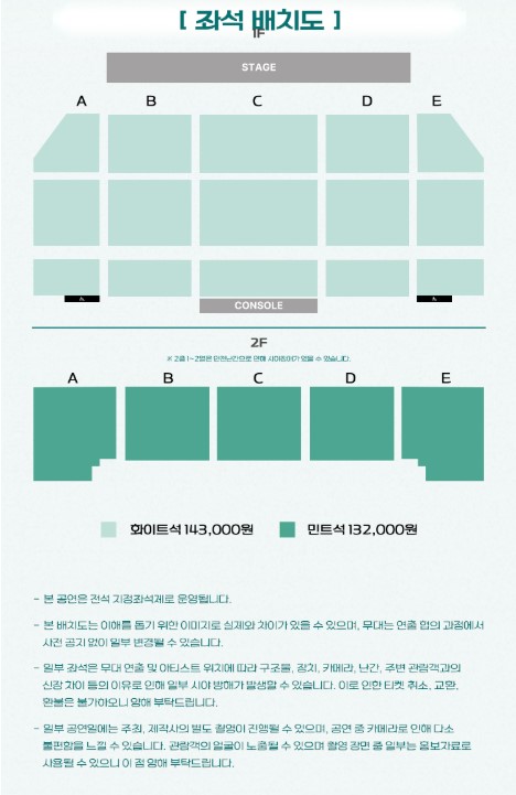 티켓 가격 : 화이트석 143,000원, 민트석 132,000원, 화이트석(현장수령) 143,000원